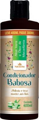 Linha Babosa Hidrata e traz maciez aos fios. Com aloe vera e óleo de macadâmia. Com 400 ml cada. 34 , 99