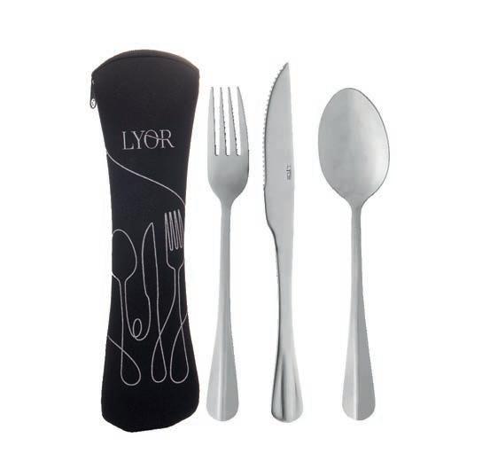 Kit Estojo 4 Peças. Com 1 estojo neoprene e 3 talheres em aço inox. Tam.: 1 colher (18 cm), 1 garfo (21 cm) e 1 faca (23 cm). cód.: 6.628.619 24 , 99
