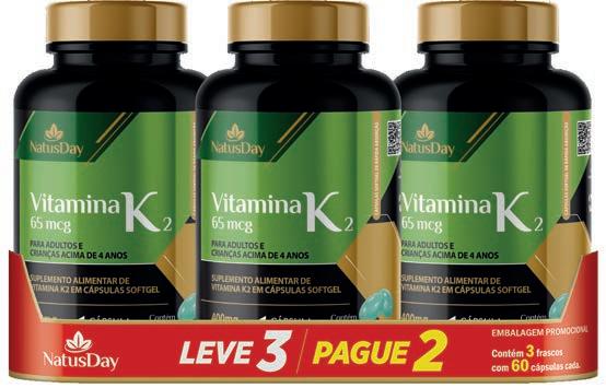 Vitamina K. Suplemento alimentar em cápsulas softgel. Para adultos e crianças acima de 4 anos.