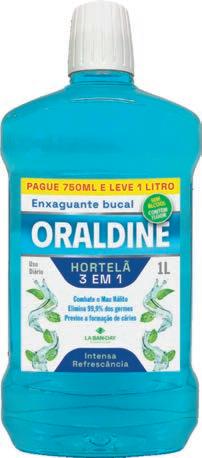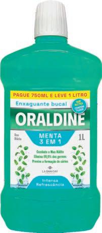 Enxaguante Bucal 3 em 1: Combate o mau hálito, elimina 99,9% dos germes, previne a formação de cáries. Intensa refrescância para uso diário. Contém