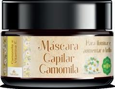 Máscara Capilar Camomila Para iluminar e aumentar o brilho. Com vitamina E, sem parabenos. Produto vegano. Com 250 ml. cód. 6.631.741