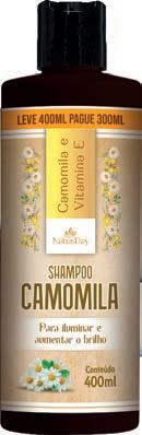 Linha Camomila Para iluminar e aumentar o brilho. Com vitamina E, sem parabenos. Produto vegano. Com 400 ml cada