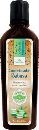 Linha Babosa. Hidrata e traz maciez aos fios. Com aloe vera e óleo de macadâmia. Com 240 ml cada.