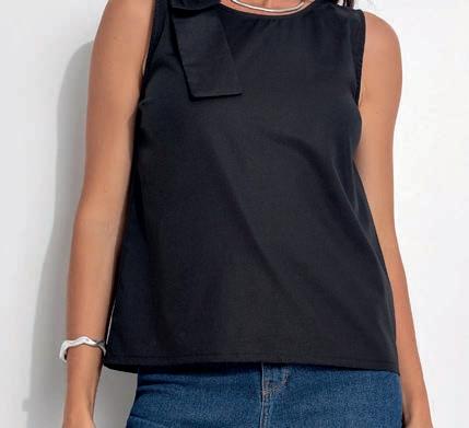 Blusa, em malha de algodão canelada com elastano. Elástico no decote. Tam.: 12-14-16 cód.: 6.633.977