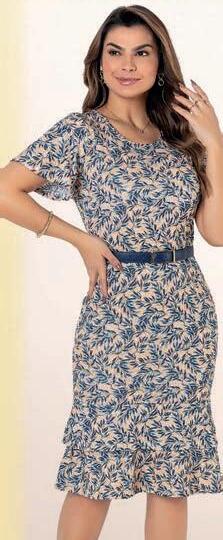 4. VESTIDO, malha fria. Elástico na cintura. Não acompanha cinto. Comp. longo. Tropical Colorido 6.472.554