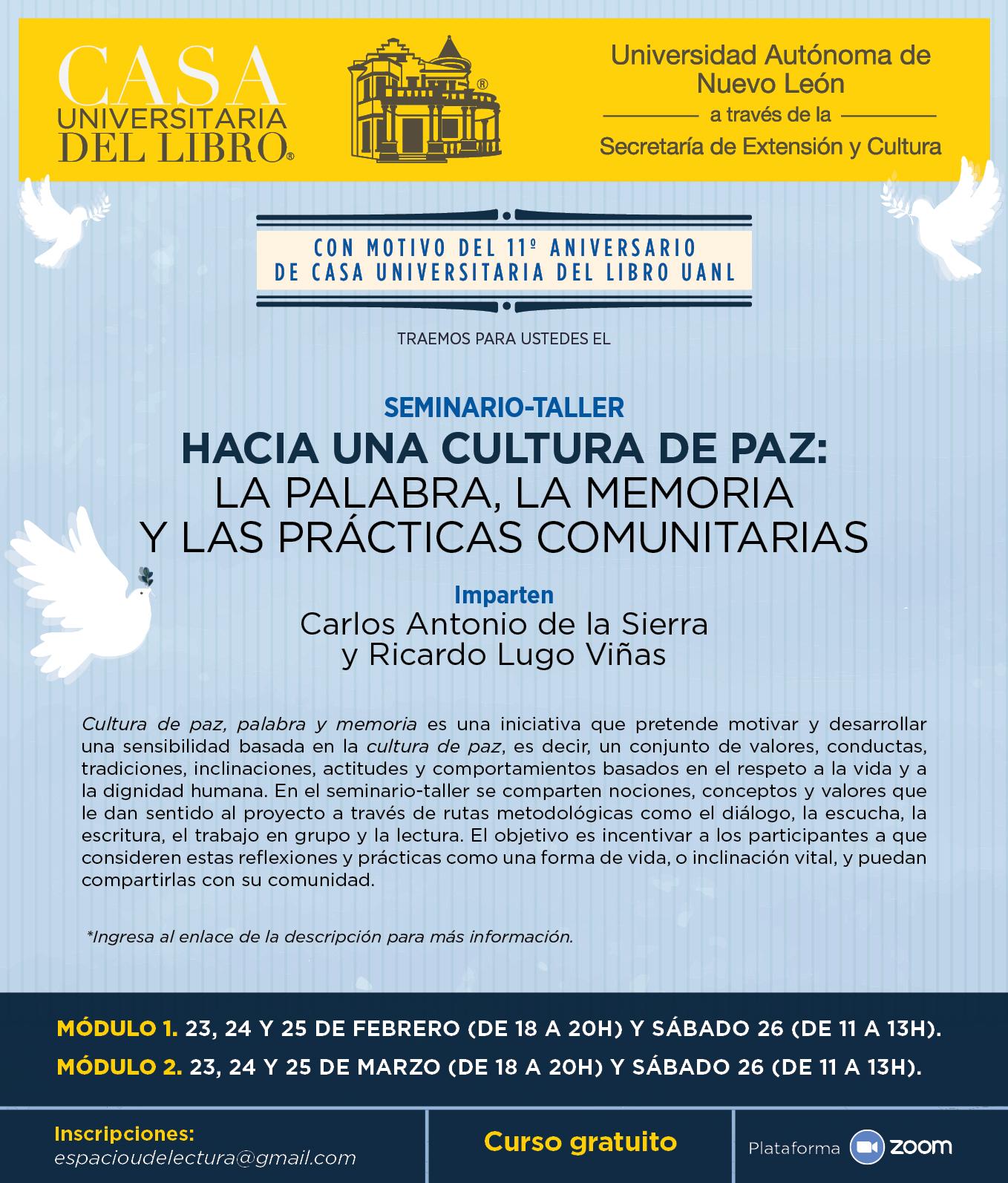 El ciclo finaliza el 8 de marzo con la participación de Lídice Ramos Ruiz, quien disertará sobre el “8 de marzo en N.L.: memoria y actualidad”, donde se presentarán datos de la memoria conmemorativa sobre el día de las Mujeres, dentro de las actividades cívicas y la memoria de los grupos de mujeres del estado.