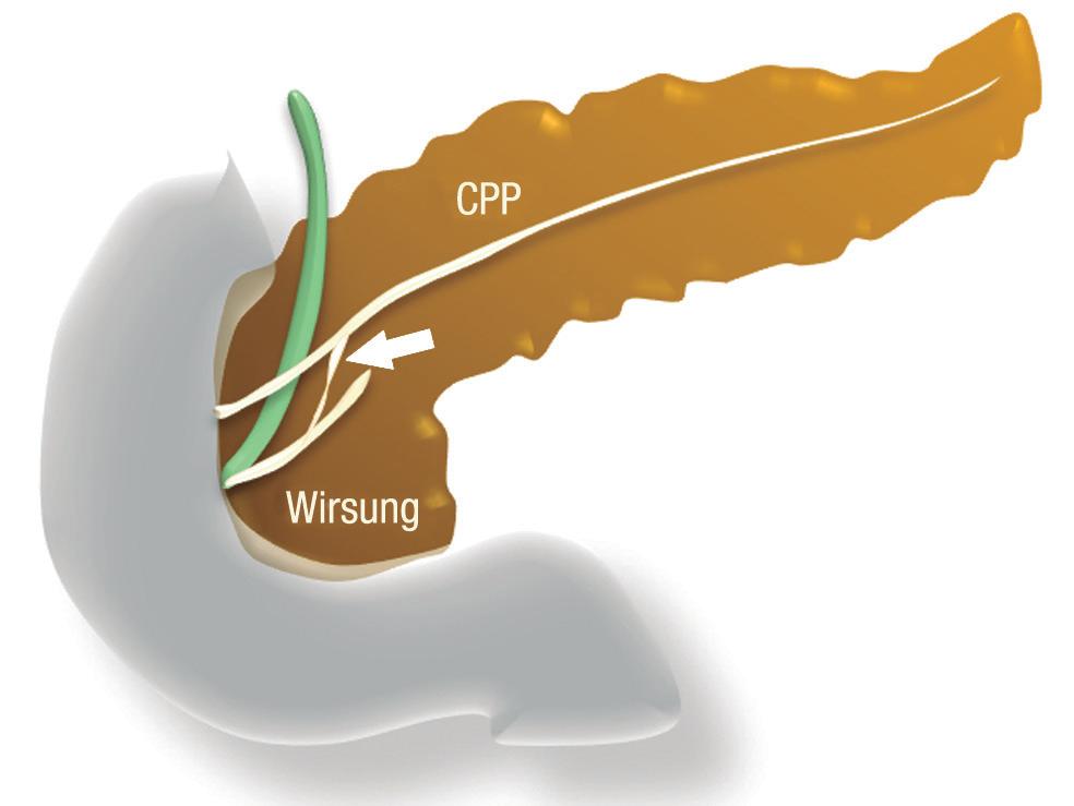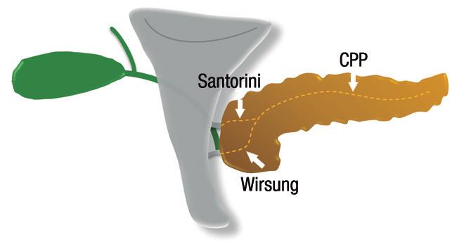 Tipo II: el conducto de Wirsung rodea el duodeno pero drena en la papila mayor.
