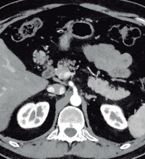 cuando se evalúa al paciente por síntomas de pancreatitis o úlcera péptica.5 Los síntomas más frecuentes incluyen dolor abdominal, náuseas, vómitos y, en menor grado, hematemesis e ictericia.6 La presentación clínica del páncreas anular en adultos difiere de la población pediátrica.7 A continuación se presenta el caso de una mujer adulta con síntomas gastrointestinales inespecíficos, en quien se documentaron hallazgos de páncreas anular completo. Este caso es inusual en relación a sus características epidemiológicas, que incluyen sexo y edad de presentación, y a los hallazgos en los métodos de imágenes de parénquima pancreático que rodea completamente la segunda porción duodenal, con conducto de Wirsung que circunda el duodeno para drenar en la papila mayor.