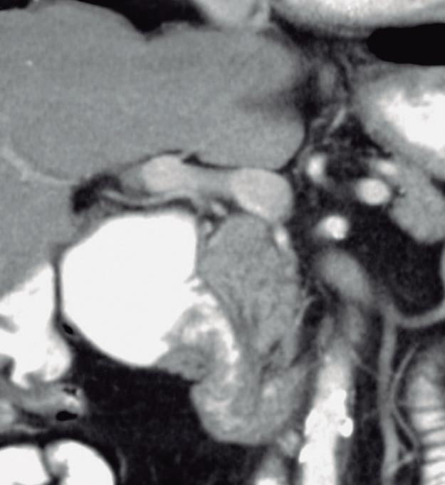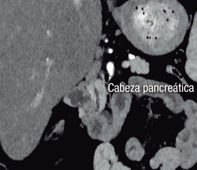 mente diagnosticados de forma temprana. 10 En adultos las manifestaciones clínicas provienen de un cuadro de menor gravedad que resulta en síntomas inespecíficos. Usualmente se presenta con pruebas de función hepática alteradas y dolor en cuadrante superior derecho después de la ingesta de alimentos grasos. Otras presentaciones clínicas incluyen obstrucción del intestino delgado con náuseas, emesis y distensión abdominal. 10 En este caso clínico, la presencia de síntomas inespecíficos en una paciente femenina sin otras anomalías congénitas conocidas, hicieron que la sospecha inicial de páncreas anular fuera difícil.