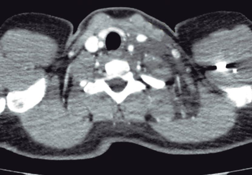 S e realiza el análisis fisicoquímico del líquido ascítico, con triglicéridos 2.187 mg/dl. Cultivo de líquido positivo para Enterococcus viridans y Klebsiella. La paciente evolucionó favorablemente, con reducción del volumen de la masa cervical en el postoperatorio inmediato y disminución del débito por los drenajes.