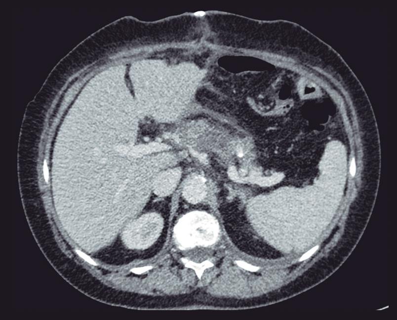A la semana del alta se realizó una TC de control que mostró la reducción del linfocele cervical y del líquido abdominal.