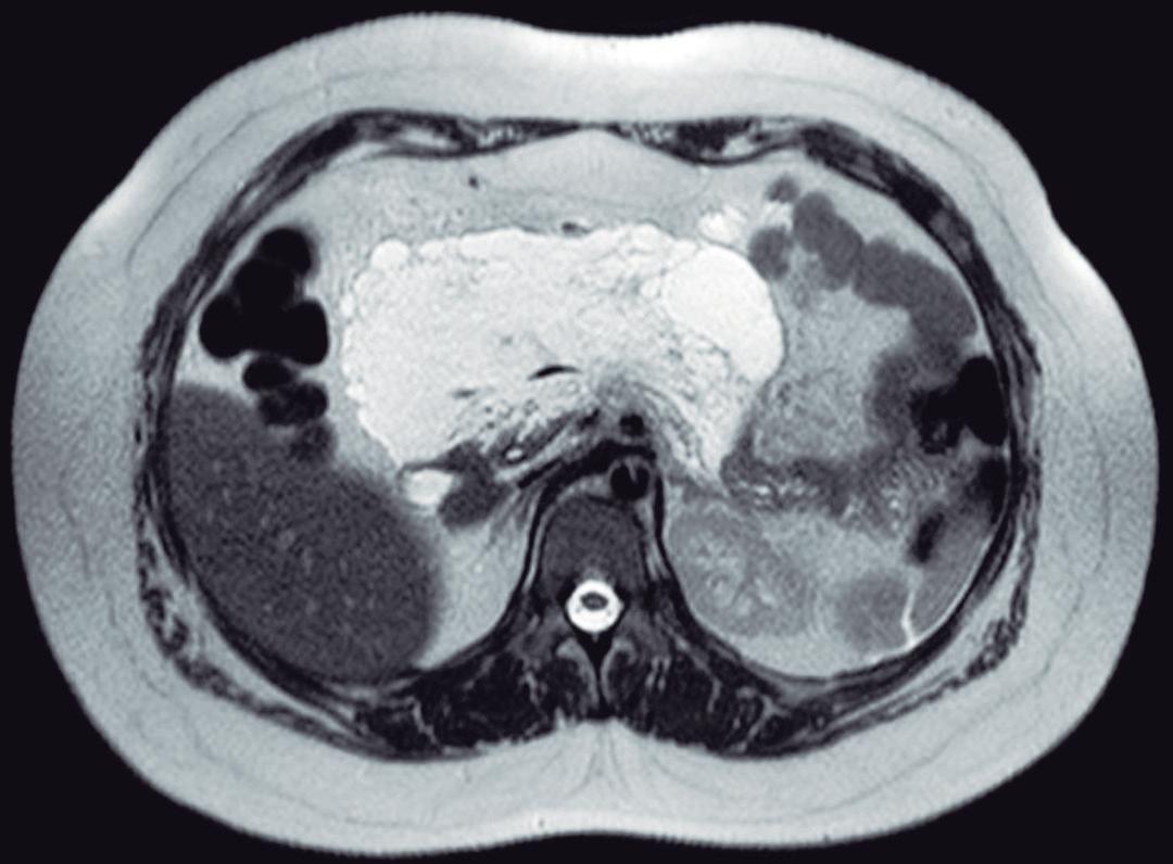 Cuando el contenido es predominantemente quiloso, puede observarse hiperintensidad en T1 e intensidad intermedia en T2.³