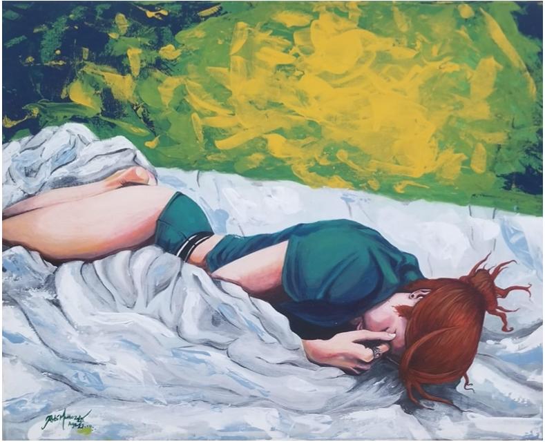 Perdida, anduve por horas con un cuchillo enterrado en mi cuerpo a la altura del útero. No dolía, pero no lograba quitarlo. Entonces, me encontré con un lago y el agua era roja como sangre. Allí me incliné y vi a alguien en mi propio reflejo: Jesucristo. “¿Por qué?” me preguntó. “No aguanto más...” contesté. “¿Será siempre así?” Él se rió y dijo que yo aún no había descubierto el misterio pero que, en algún momento, este se revelaría. Sacó el cuchillo de mi guata y susurró “Vete y no