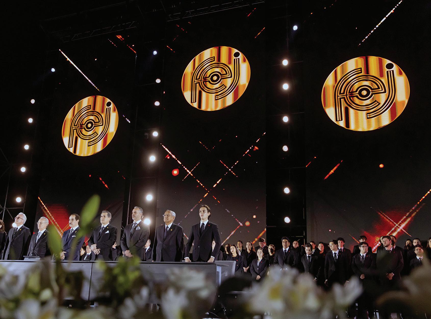 “Esta noche nos reunimos en un acto solemne que trasciende generaciones y reafirma nuestra identidad. Conmemoramos 90 años de historia, de lucha y de trascendencia; 90 años de formar juventudes en los valores trascendentes; Dios, Patria y Familia; 90 años de formar líderes con ideales; 90 años de permanente innovación… 90 años transformando el mundo”, refirió el rector.