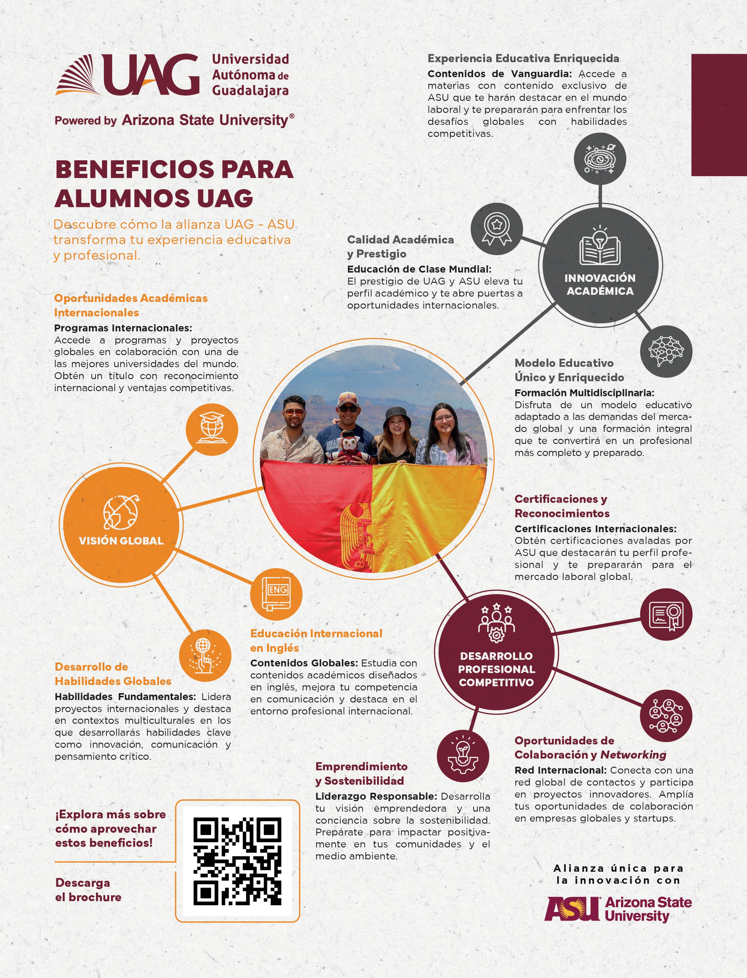 Por otro lado, esta alianza estratégica es clave para potenciar el desarrollo académico y profesional de nuestros estudiantes de licenciatura, permitiendo que puedan incorporarse con éxito al mercado laboral local o incluso en los EE. UU., porque con ella tienen acceso a oportunidades académicas internacionales y a un modelo educativo único que aplica metodologías innovadoras. Además, pueden participar en programas de verano, conferencias y seminarios globales, obtener certificaciones internacionales, maestrías aceleradas y programas de doble grado con ASU, lo que hoy es posible para más de 20 programas UAG, y vienen en camino más iniciativas.