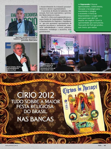 o desenvolvimento da economia paraense”, destacou o diretor-superintendente. O secretário de Estado de Indústria e Mineração, Davi Leal, representou o governador Simão Jatene no evento. Em 2012, a Feira será segmentada nos espaços Gestão do Conhecimento, Tendências e Oportunidades de Negócios e Atendimento - que irão apresentar oportunidades de negócios inovadores e sustentáveis, orientação individualizada e cursos, palestras, seminários, workshops e encontros, tudo gratuitamente.