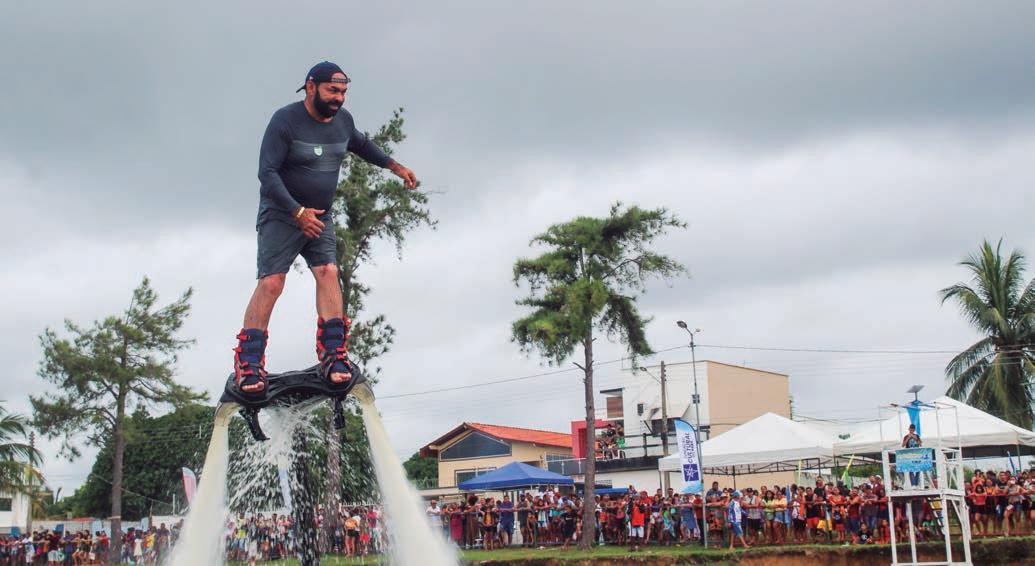 Marcelo Gamboa, no Flyboard, durante o 4º Portel AquaFest, em frente a orla da Praia do Arucará, em Portel – PÁ. Foto: Ascom Prefeitura de Portel