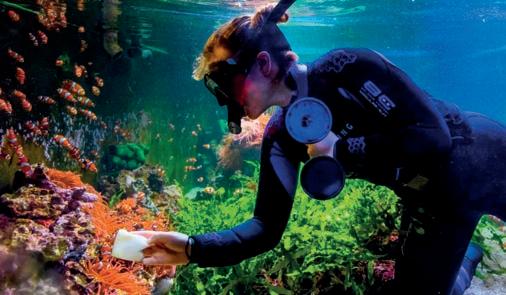 Especialista aquarista enfeitando os tanques prontos para receber os convidados