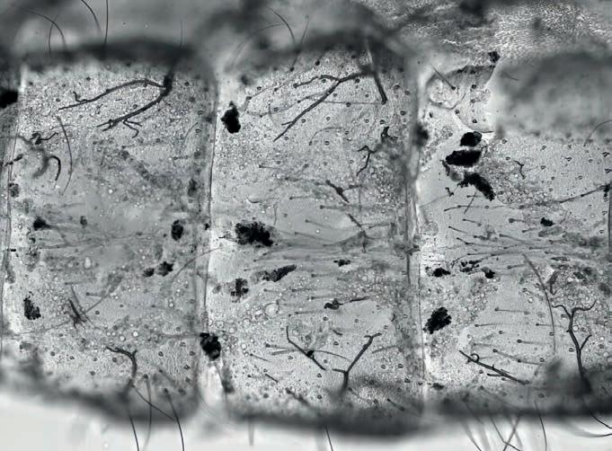 dos mosquitos, enfraquecendo seus sistemas imunológicos. Como na visão aproximada do abdômen de um mosquito, que contém depósitos escuros de melanina