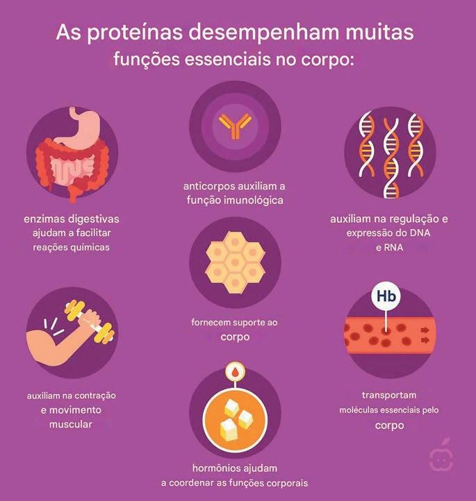 As proteínas são os blocos de construção do corpo, formando tudo, desde músculos e hormônios até enzimas digestivas e a hemoglobina que transporta oxigênio no sangue.