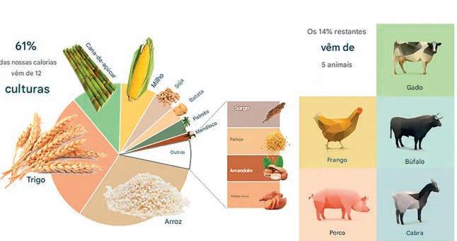 Para os oito bilhões de habitantes do mundo, apenas 12 espécies de plantas e cinco espécies de animais respondem por cerca de 75% do suprimento global de alimentos.