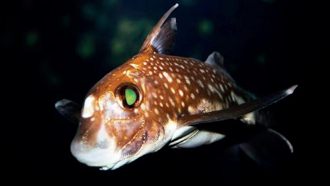 No fundo do oceano, você pode encontrar um peixe estranho com dentes não apenas na boca, mas também na cabeça.O peixe-rato-pintado , um parente dos tubarões, mede cerca de 60 centímetros de comprimento e é encon-