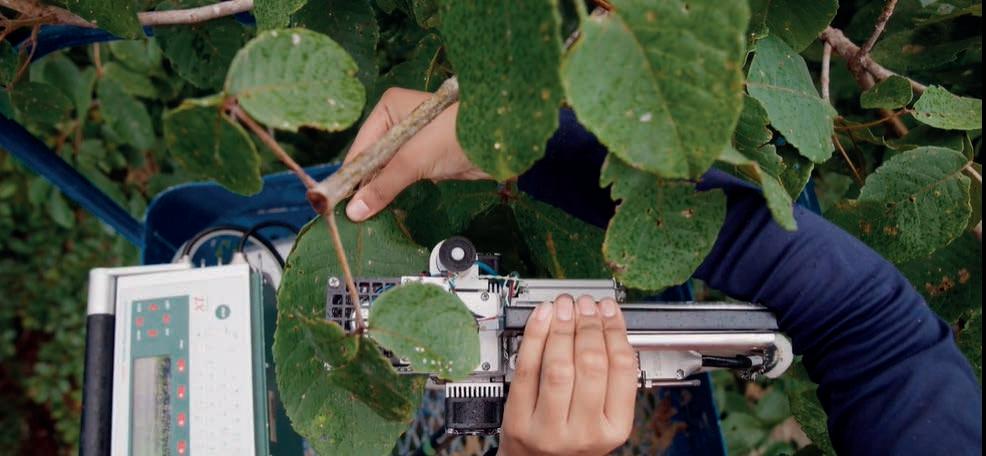 Chambers também colaborou com uma equipe para instalar sensores nas próprias árvores, a fim de registrar o fluxo de água do solo até o caule e para a atmosfera. Esses sensores medem o fluxo de seiva, a temperatura das folhas, a transpiração da água pelas folhas e o potencial hídrico do solo — ou seja, a dificuldade que a árvore encontra para absorver água do solo até suas folhas mais altas por meio da transpiração.