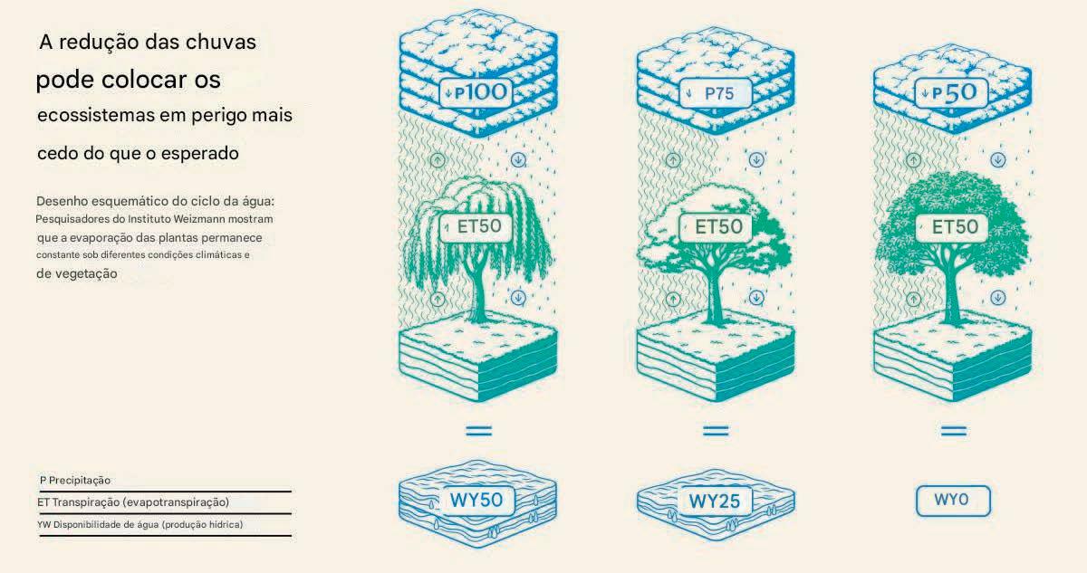 “Quanta chuva caiu?” é uma pergunta fundamental em qualquer discussão sobre o clima. Mas talvez haja uma ainda mais importante. Assim como qualquer orçamento doméstico, a economia global da água se baseia na “receita”, ou seja, a água que entra no sistema como precipitação, e na “saída” – a água que sai do sistema por meio de várias formas de evaporação. Em terra, a água evapora principalmente através da vegetação, em um processo conhecido como evapotranspiração. Em um estudo recente na Nature Communications, cientistas do Instituto Weizmann de Ciências descobriram que, ao contrário de suposições anteriores, a evapotranspiração tem um limite superior estável, permanecendo constante sob diferentes condições climáticas e de vegetação