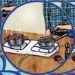 O biogás é armazenado no reservatório de gás para ser usado em um fogão