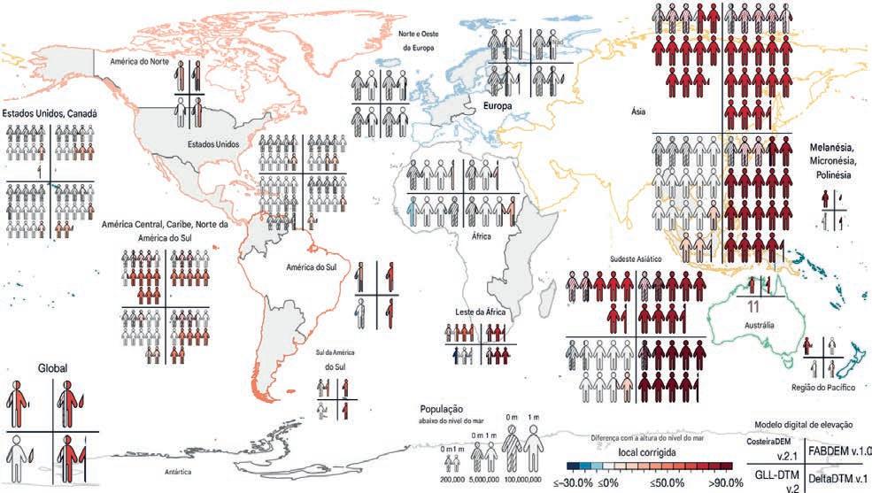 Uma meta-análise revelou que a elevação do nível do mar nas costas foi subestimada, sendo em média 30 centímetros maior do que as projeções anteriores indicavam. O erro ocorreu porque mais de 90% dos estudos usavam modelos gravitacionais globais baseados em satélites, ignorando fatores locais decisivos como ventos, marés e correntes oceânicas. Por causa dessa correção, os cientistas...