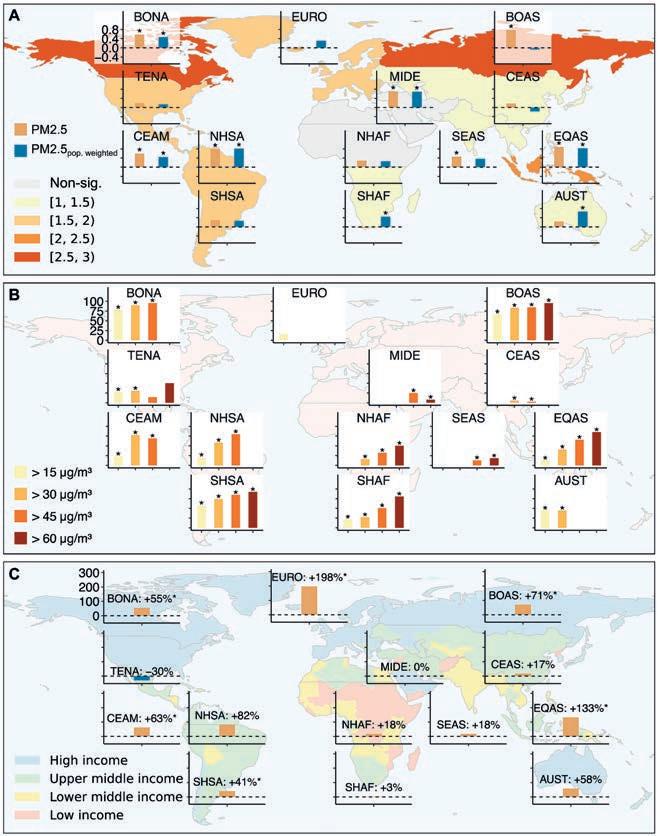“Ficamos surpresos ao constatar que, embora a Ásia veja os maiores benefícios totais da ação climática para sua grande parcela da população, os países africanos são frequentemente os mais dependentes da ação externa, com a quantidade de benefícios à saúde que obtêm da mitigação climática no exterior aumentando em cenários futuros fragmentados”. As projeções da equipe também mostram que o equilíbrio da poluição que transpassa fronteiras pode mudar, mesmo quando a poluição global total do ar diminuir.