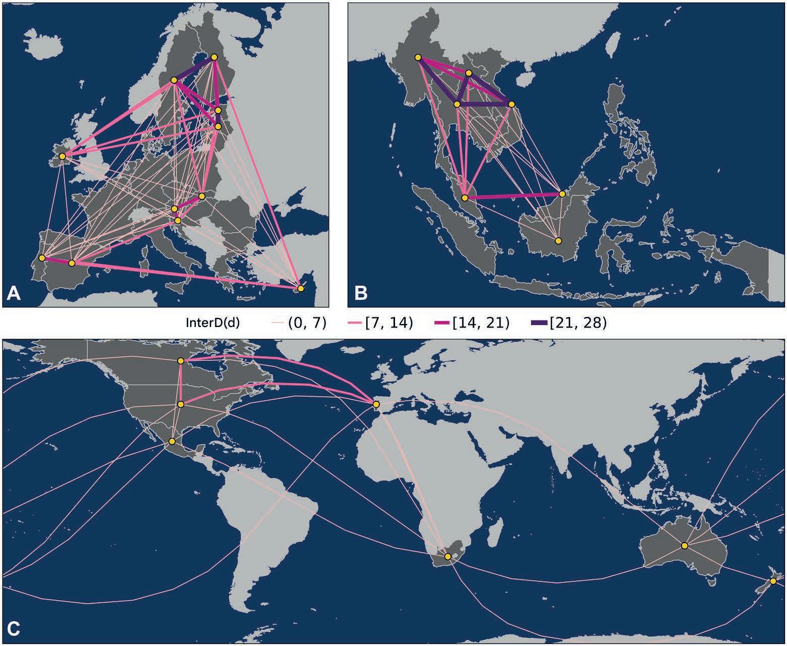 A fração de co-benefícios originados externamente é maior em países em desenvolvimento (0,76 em SSP1-26) do que desenvolvidos (0,65), indicando que países em desenvolvimento dependem mais de ações externas. Embora os co-benefícios sejam maximizados no cenário mais ambicioso, SSP1-19 (1,32 milhão de mortes evitadas), a troca transfronteiriça entre países varia. Esses resultados sugerem a necessidade de políticas climáticas que considerem como as desigualdades na poluição atmosférica transfronteiriça evoluem por meio de tendências socioeconômicas distintas e estratégias de mitigação, além das estimativas totais de co-benefício.