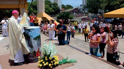 Pedido de benção e agradecimento durante a celebração da missa do Círio de Nossa Senhora de Nazaré, na Catedral São José, 2020 Missa de apresentação e envio das imagens peregrinas de Nossa Senhora de Nazaré, pelos órgãos, instituições públicas e privadas, e famílias devotas Benção e homenagem das crianças durante o translado da imagem peregrina na Romaria dos Rodoviários