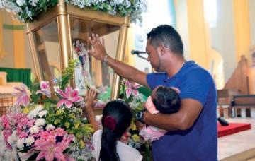 Dom Michel Dubost, Bispo Administrador Apostólico da Diocese da Guiana A emoção de saudar e pedir bençãos à Nossa Senhora de Nazaré