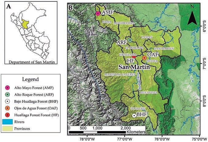 Neste estudo, Vallejos-Torres e seus colegas se propuseram a determinar quais árvores armazenam as maiores quantidades de carbono em cinco florestas representativas do departamento de San Martín, no norte da Amazônia peruana: Ojos de Agua, Huallaga, Bajo Huallaga, Alto Mayo e Alto Roque.
