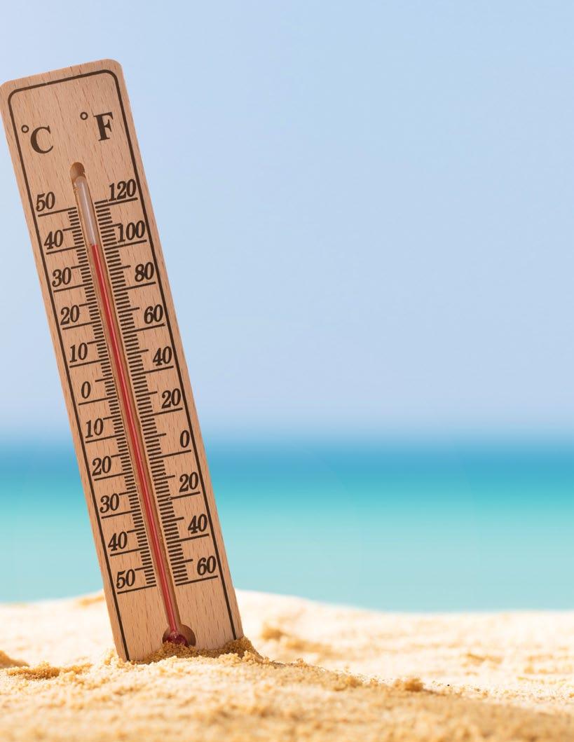 combinación del calor que se mide por el termómetro y la humedad relativa del ambiente. En los meses de junio, julio y agosto de 2023 se emitió alerta de calor aproximadamente 32 días, lo que representa una tercera parte de los días de estos meses. Además, en el mes de junio, cinco días superaron los 95º F y, en agosto, cuatro días superaron ese umbral, llegando incluso a establecer algunos días con récord de temperatura. Hay que recordar que la NOAA reportó que en tres ocasiones la temperatura media de la Tierra rompió su récord de calor.