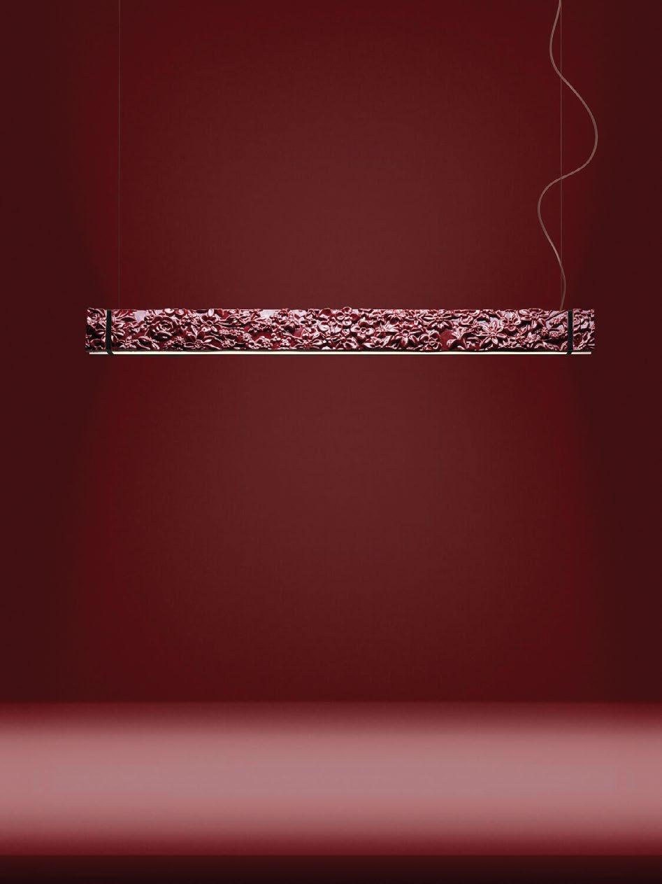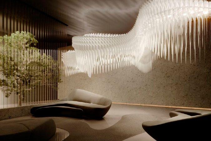21. SINUOSIDADE SEM LIMITES. De essência absolutamente escultural, o pendente Aria Infinita, do escritório Zaha Hadid Design, possui traçado curvilíneo feito a partir de uma técnica patenteada da Slamp Modular, o sistema pode replicado indefinidamente com extensão mínima de três metros.