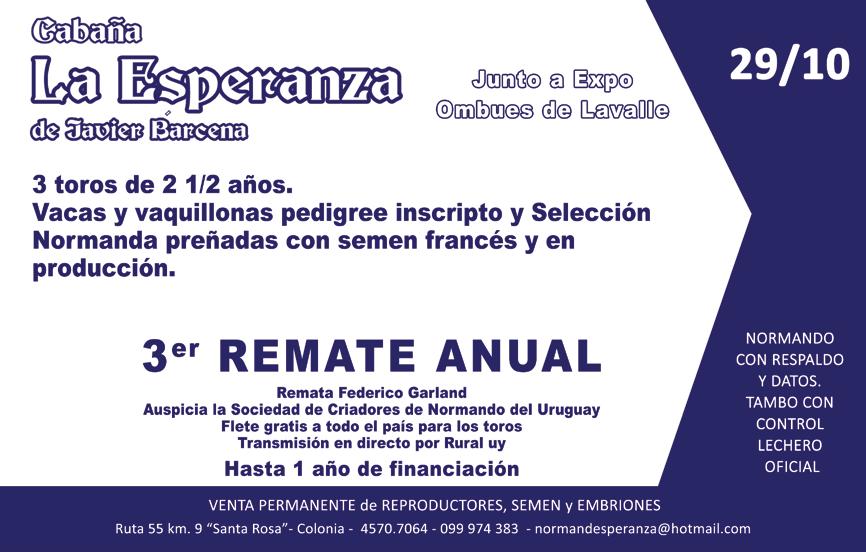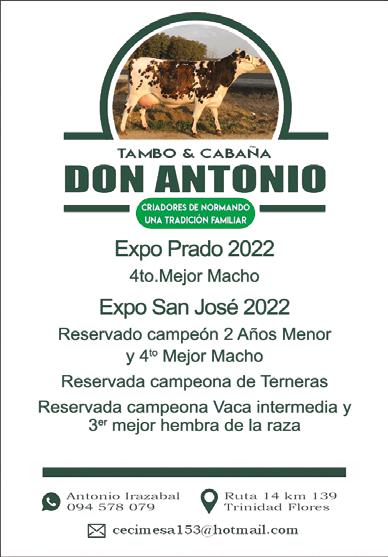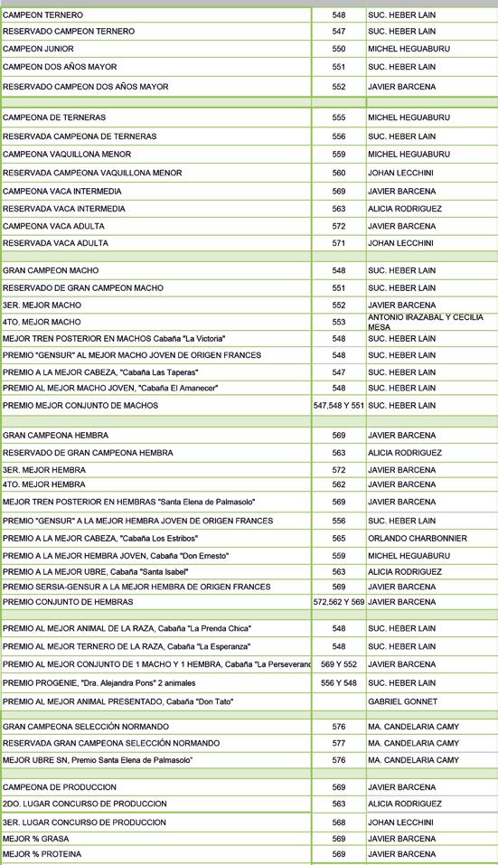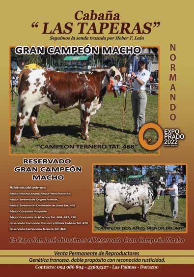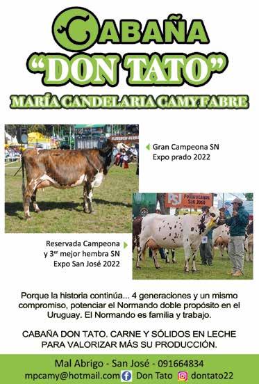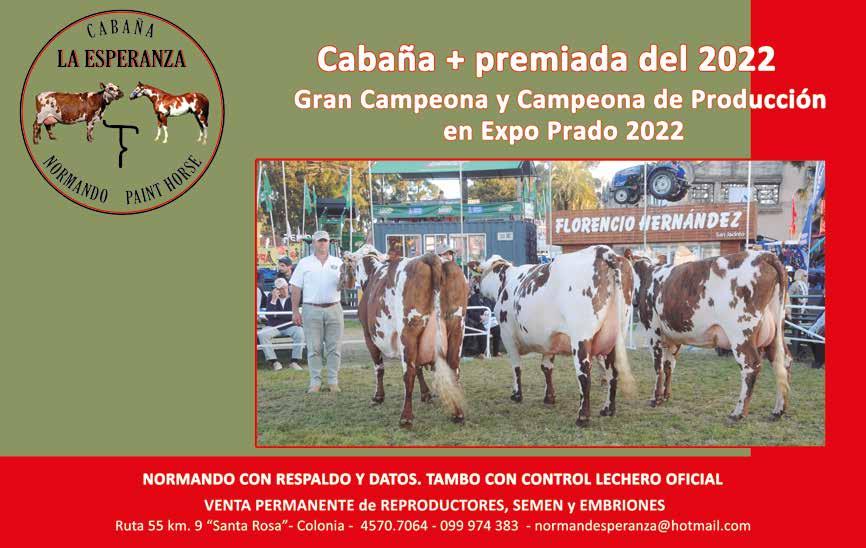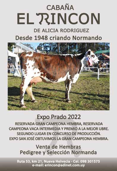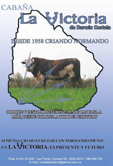 ste año la Sociedad de Criadores ha tenido que enfocar nuevas exposiciones, entre ellas la Mercolactea, que se realizó por primera vez en el Uruguay, donde las tres razas lecheras, la industria y la tecnología de la leche estuvieron presentes y el Normando marcó su presencia. Quisiera agradecer a las cabañas, a los criadores, expositores y a los normandistas y seguidores de la Raza que nos acompañaron y galardonaron los eventos que organizamos con gran suceso.
