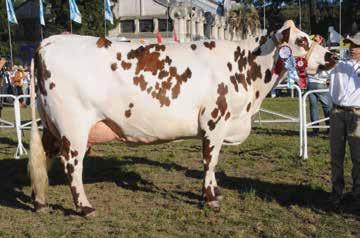 En cuanto a la Gran Campeona, la Campeona Vaca Intermedia, es una vaca que estaba en todo su esplendor, una línea superior, morfología impecable y le acompaño una ubre excelentemente bien colocada y completa en todos sus aspectos. Ambos fueron animales excepcionales y me gustaría felicitar a sus propietarios.
