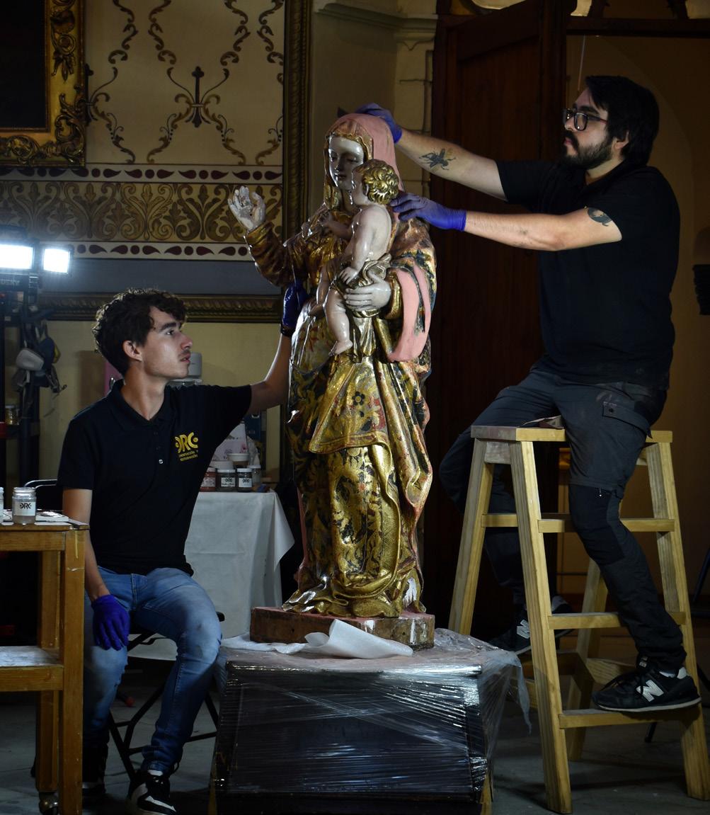 El trabajo del equipo de jóvenes restauradores del taller “ORO”, de Guanajuato Patrimonio de la Humanidad, Rest. Alexis Álvarez Lupercio, LRBM Mateo Trueba Morales, MRSM. Alma Susely Hernández Pérez y Lic.