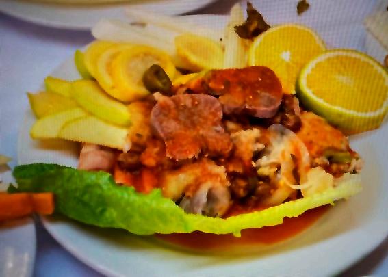 de sal, aceitunas, chilitos en vinagre y alcaparras. Se adorna el paltón con cogollos de romanitas, rábanos partidos en cuartos y cebollas desflemadas en agua.