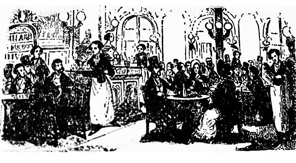 El bullicioso ambiente en un restaurante de principios del siglo XX.