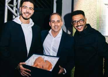 Leo Fontes, presidente da CBGE – Confederação Brasileira de Games e Esports, entre Ronald e Douglas Buiu, mostra o artesanato nordestino de um leão, que representa força. 1 2 3 5 6 7 8