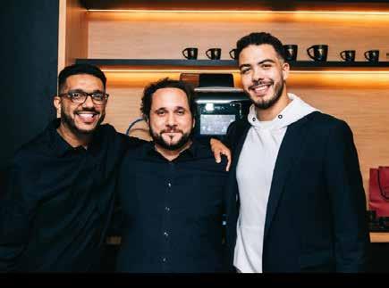 Francisco Conte, dono do Fran”s Café, entre Douglas Buiu e Ronald.