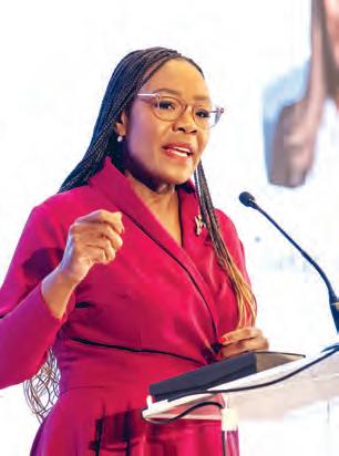Above (clockwise from top left) Nolitha Fakude; conference panelists; Duke CE’s Sharmla Chetty; Cisco’s Fran Katsoudas; Zanele Mbeki receiving tributes; South Africa’s Audior General, Tsakani Maluleke; Mastercard trio Bryan Habana, Michael Fraccaro and Lucrecia Borgonovo