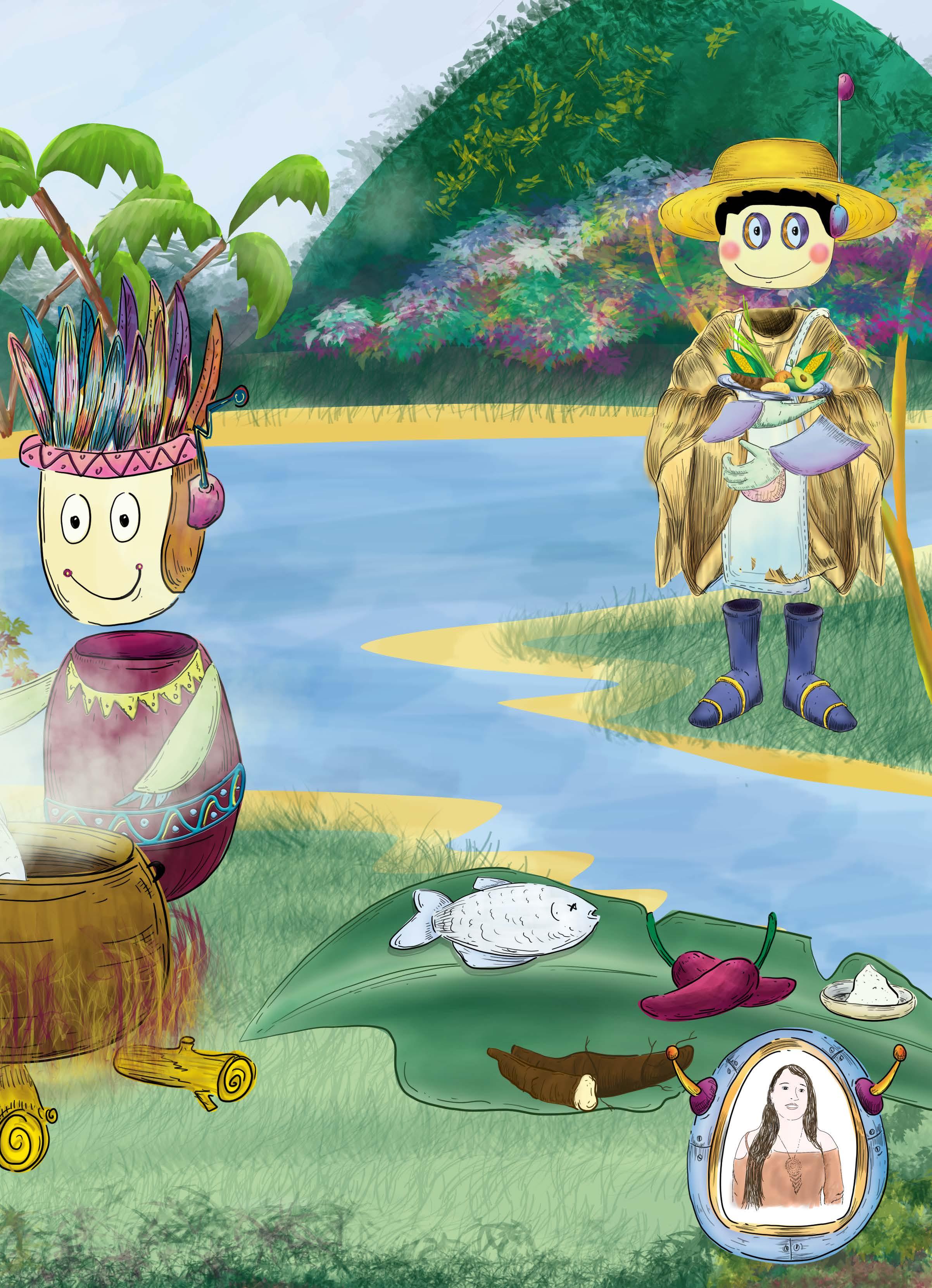 Con ayuda de su apá’ o su amá’ consigan pescado, puede ser cachama o waracú.
