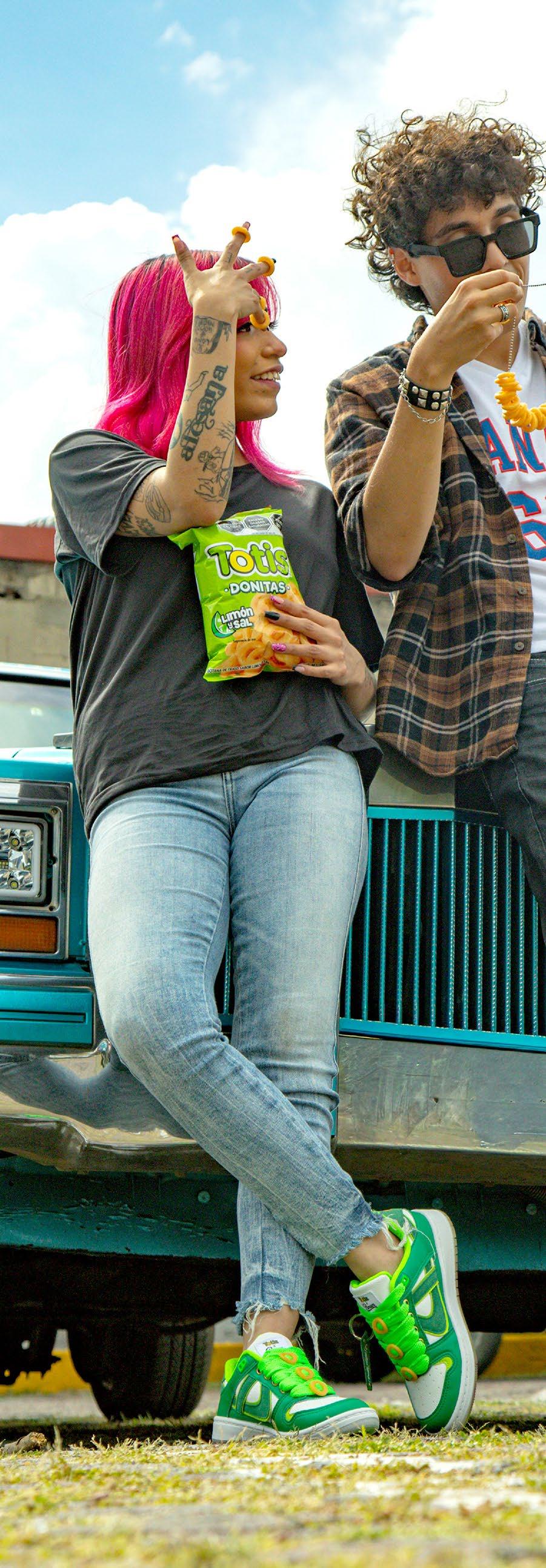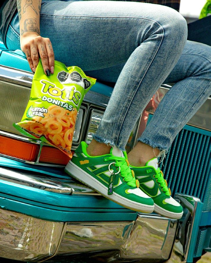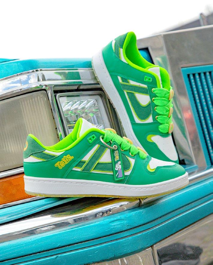La colección que ya está disponible en tiendas físicas y en línea, se inspira en la silueta Meztli, que se tiñe de verde Totis con detalles amarillos que evocan los empaques de la botana. Cada par lleva impresa en la suela la frase “¡Ponte Orejas! ¡Ponte Panam!”, un guiño al famoso conejito Totis y a la picardía nacional. Además, los cordones incluyen pequeños aros que imitan las icónicas donitas de maíz, haciendo de cada paso una referencia al sabor de la infancia.
