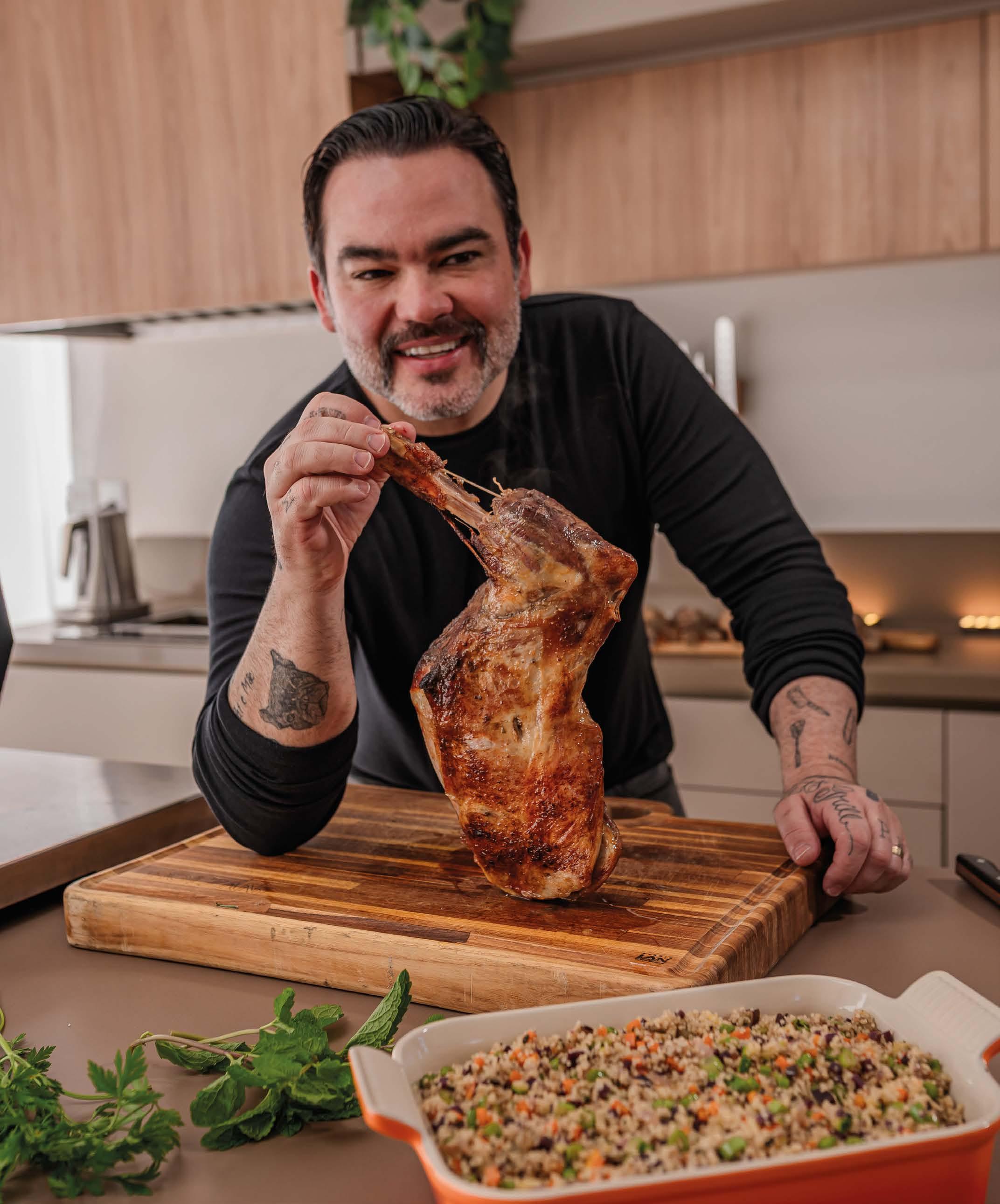 Esse vínculo emocional também se reflete em sua visão de gastronomia: mesa cheia, gente feliz, risadas e