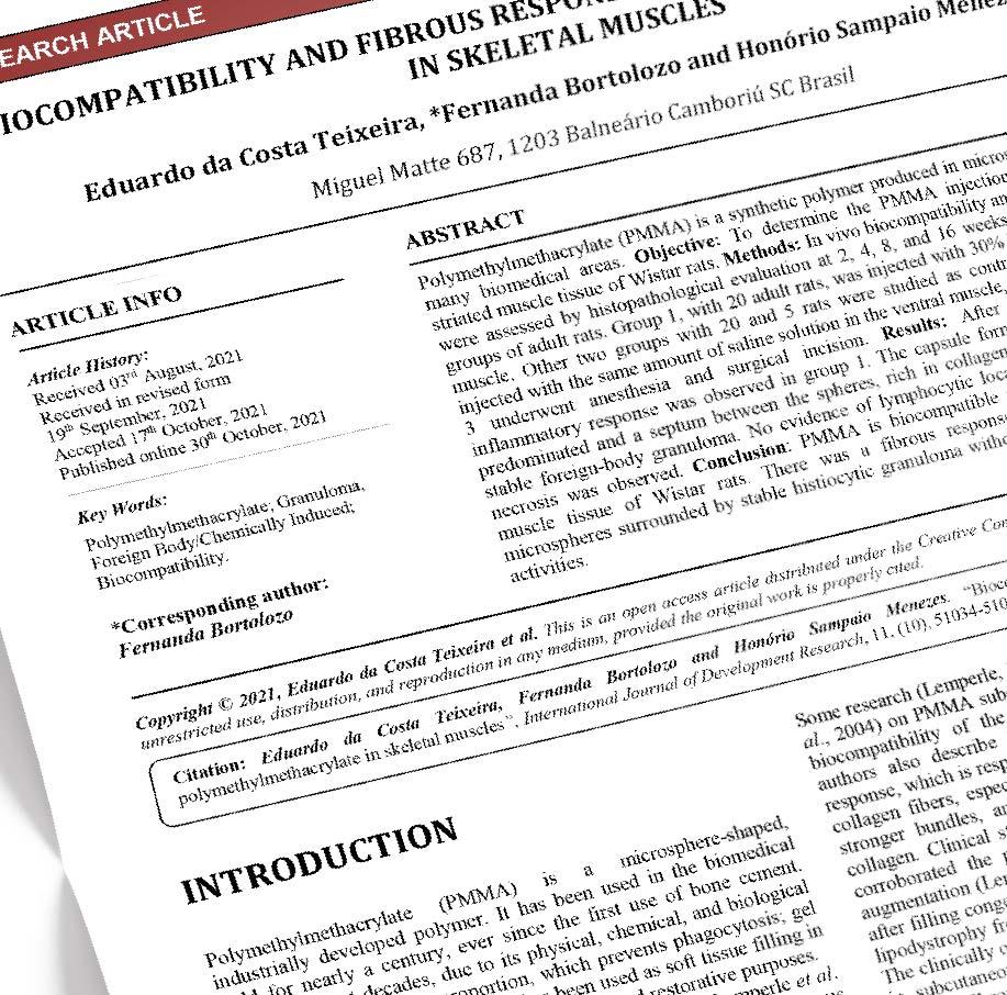 O material apresenta uma extensa bibliografia de estudos nacionais e internacionais que comprovam a segurança, eficácia e versatilidade do PMMA em diversas aplicações médicas e estéticas.