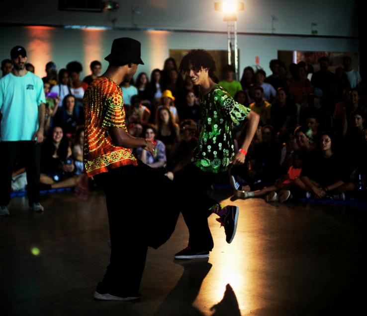 o Yugson e o Kapela, vindos diretamente da França. Além deles, outros fomentadores da dança que deram aula foram: Simone Vieira, de BarbacenaMG, que misturou danças populares brasileiras com house; Ariela Leiva, da Argentina, que incorporou a salsa em sua dança; Hugo Campos, de Recife, que trouxe bastante referência do coco de roda; Vivian Shimizu, de Florianópolis, que tem um estudo encruzilhado entre o house e o sapateado; entre outros. As aulas fornecidas foram para iniciantes e também para quem dança a mais tempo. Junto das aulas, as festas foram muito importantes para unir ainda mais a comunidade dos houseiros e lembrar que esse movimento é nascido das festas para a comunhão de pessoas. E assim foram as duas festas, com os Djs Kapela e Mari Rossi, tocando house music de muita qualidade. E outro lugar extremamente importante para entender a comunhão do house é a batalha. Essas foram enormes! Verdadeiros shows daqueles que brincam o house. Tiveram batalhas em dupla iniciante e batalhas avançadas, um versus um. e m c a s o d e d o r ,